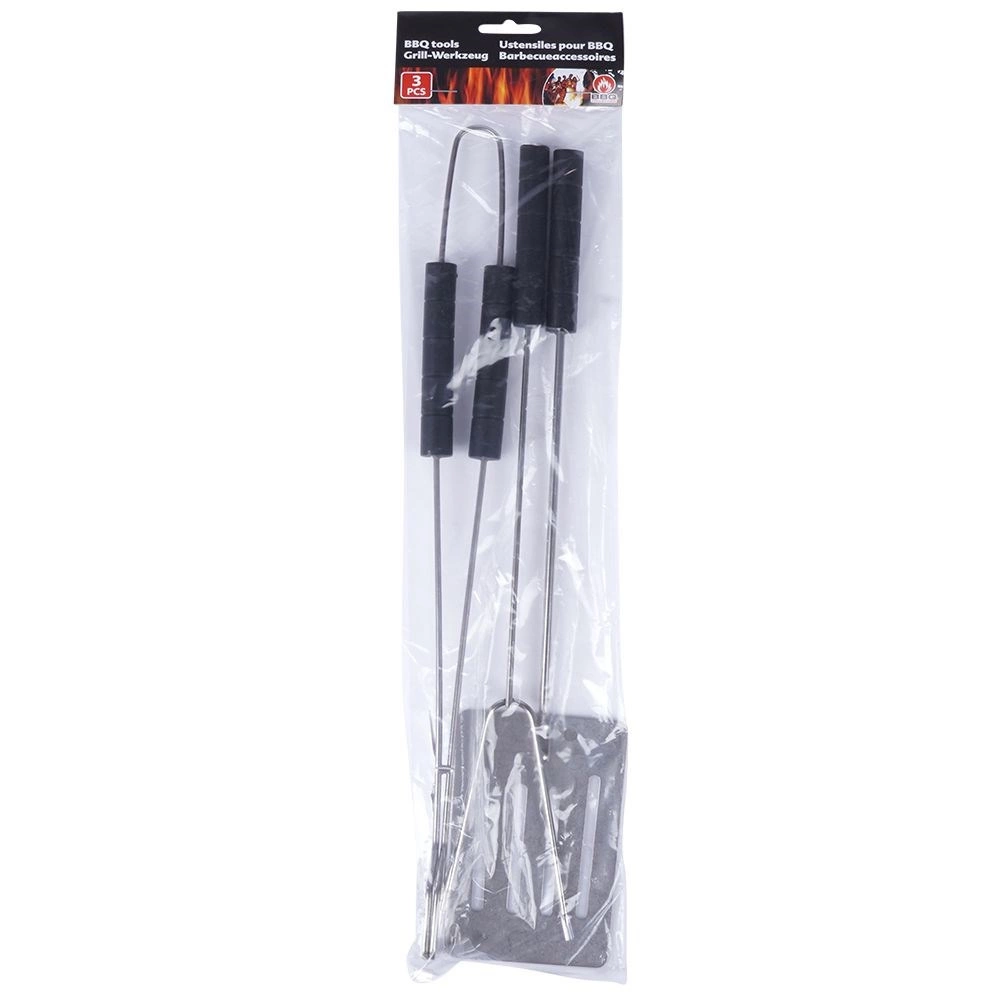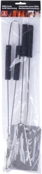 Ce set de trois ustensiles de barbecue est idéal pour retourner, servir et manipuler les aliments lors du grillage comme de la cuisson au four. Fabriqué en métal de qualité de couleur argent élégante et en plastique noir résistant pour une prise en main confortable. Grâce aux poignées longues, vous travaillez en toute sécurité et avec assurance près du grill.