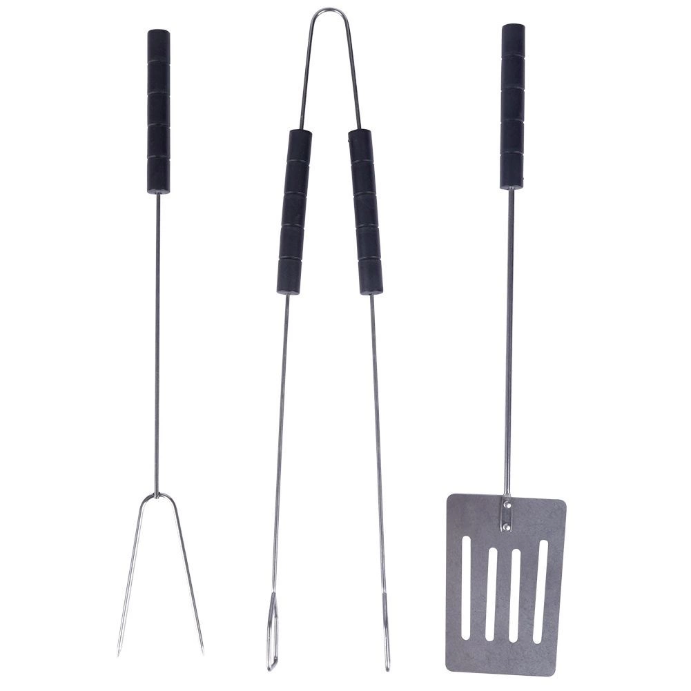 Set pratique pour chaque amateur de barbecue : spatule, pince et fourchette de 38 cm. Conception métallique résistante, poignées ergonomiques et utilisation polyvalente à la maison comme au grill. Nettoyage facile et longue durée de vie.