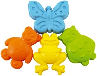 Ce set de 4 moules en plastique de qualité en forme de petits animaux stimule la créativité des enfants et leur motricité fine. Grâce aux couleurs vives et aux formes agréables, les enfants démoulent facilement de jolies constructions dans le sable ou le sable cinétique.