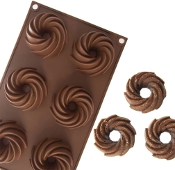 Agencement pratique de 6 cavités avec une forme spirale décorative pour une cuisson uniforme et un aspect attrayant des desserts.