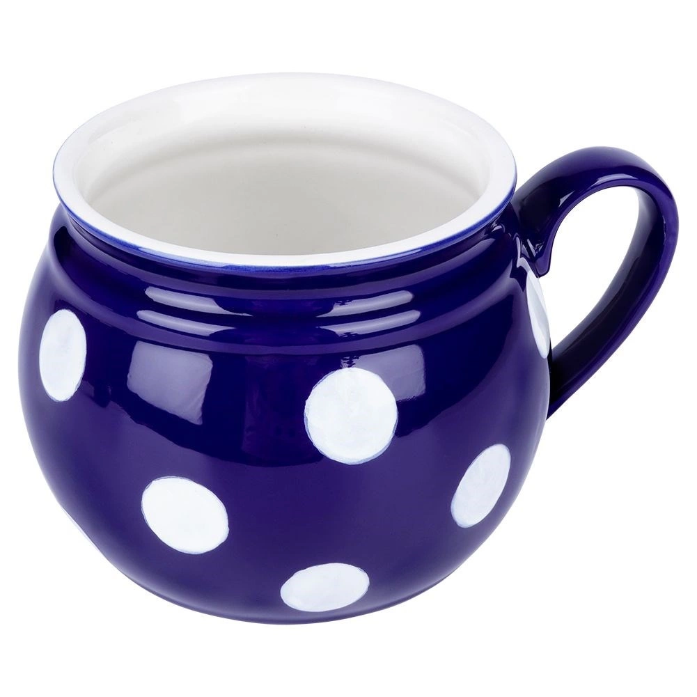 Profitez de vos boissons préférées avec style. Ce mug en céramique de 850 ml est un excellent choix pour ceux qui aiment de grandes portions de thé, de café ou d’infusions. Sa forme classique en tonneau, sa glaçure bleu foncé et ses grands pois blancs apportent une touche d’élégance à votre table et s’accordent parfaitement avec d’autres pièces de vaisselle.