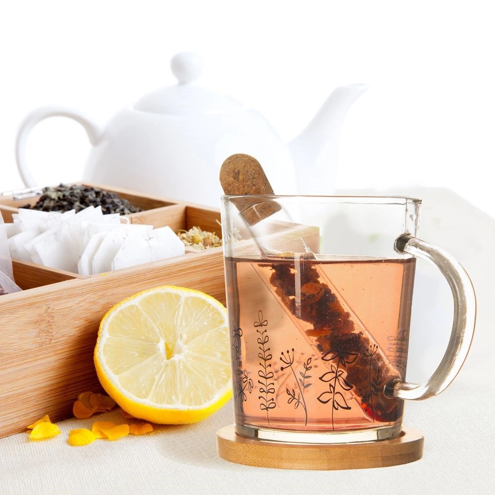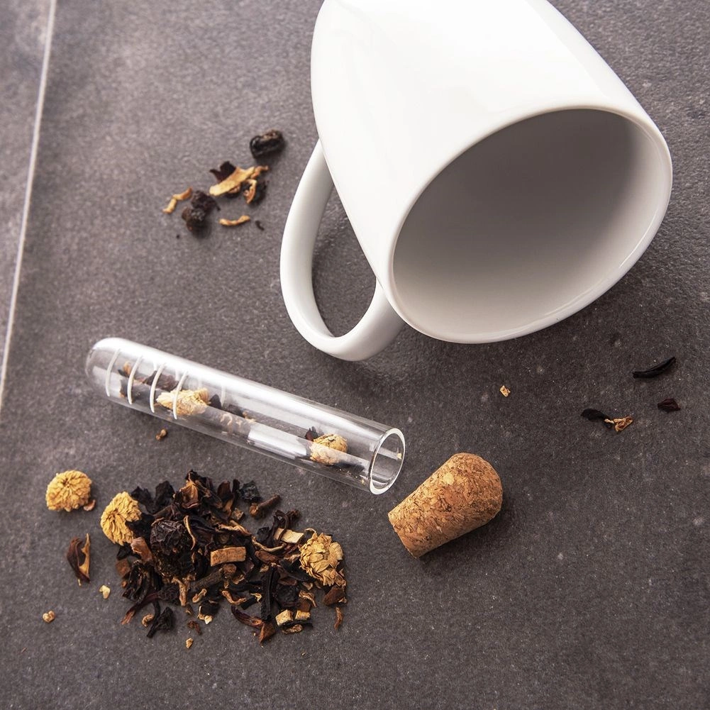 Ce délicat infuseur en verre en forme de flacon permet une infusion confortable directement dans une tasse ou un verre. Les perforations fines laissent passer toute la saveur et le parfum, tandis que les feuilles restent à l’intérieur. Le bouchon en liège est suffisamment long pour un retrait sûr sans risque de brûlure.