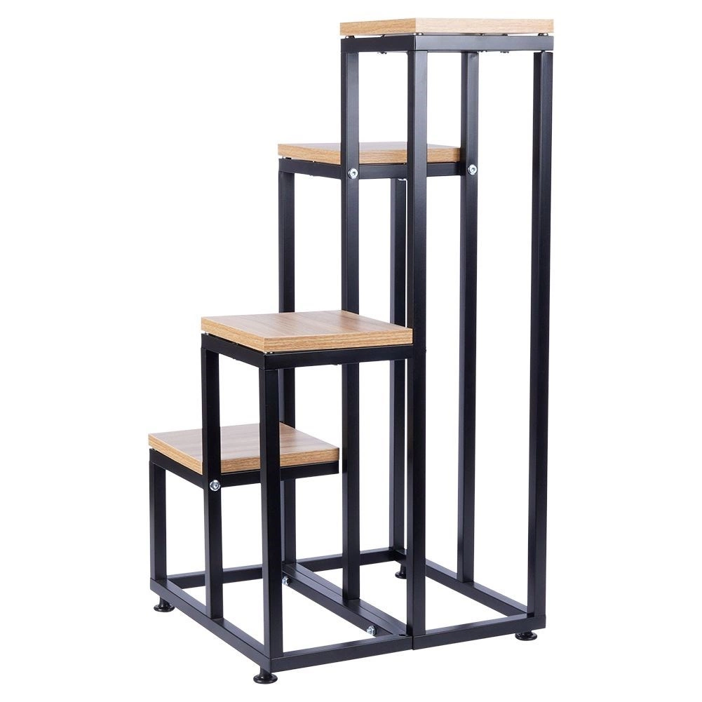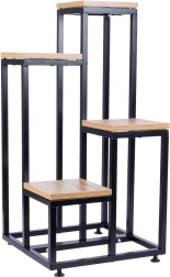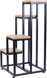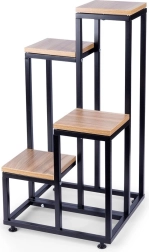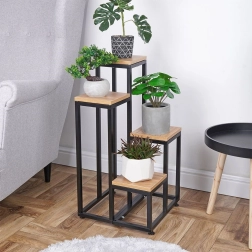 Apportez une touche loft moderne à votre intérieur avec ce support de plantes à quatre niveaux. La structure métallique stable de couleur noire et les étagères en MDF de haute qualité à la texture bois naturelle créent une combinaison intemporelle adaptée à tout espace. Le support est parfait pour les plantes naturelles comme artificielles, et sert également de présentoir pour les décorations.