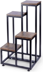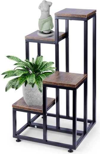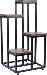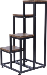 Apportez une atmosphère industrielle moderne à la maison comme au bureau. Ce support à plantes à quatre niveaux en métal noir, avec étagères en MDF de haute qualité à décor bois foncé, offre des dimensions compactes et une grande stabilité. Il s’intègre parfaitement au salon, à la cuisine, à la salle à manger, à l’entrée, mais aussi au bureau ou à la salle d’attente.
