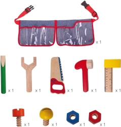Grâce à la boucle réglable, la ceinture s’ajuste facilement et permet une grande liberté de mouvement. Chaque outil est idéalement dimensionné pour les petites mains des enfants, ce qui favorise le développement de la motricité fine et de la coordination. L’ensemble comprend 10 pièces différentes offrant une multitude de possibilités de jeu créatif.