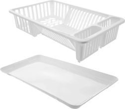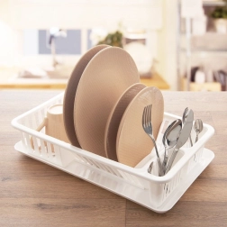 Gardez l’espace autour de l’évier en ordre et accélérez le séchage de la vaisselle avec cet égouttoir compact qui allie fonctionnalité et style épuré, universel. Le plastique blanc est facile à entretenir et le plateau amovible recueille l’eau, protégeant ainsi le plan de travail de l’humidité et des taches.