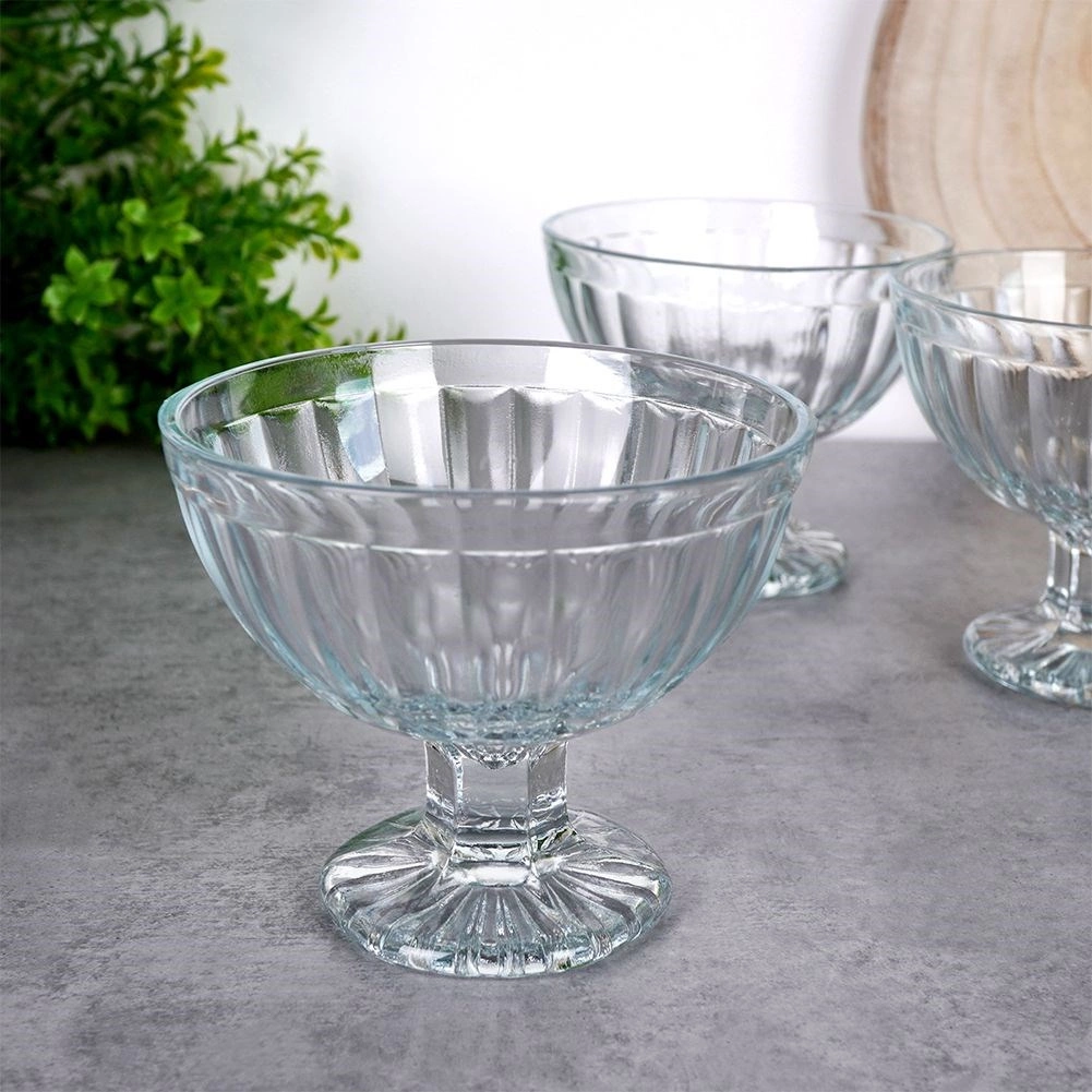 Élégantes coupes à glace en verre d’une capacité de 180 ml, idéales pour servir des desserts à la maison comme en restauration. Fabriquées en verre de qualité, résistant et à relief décoratif, elles sont universelles, pratiques et compatibles lave-vaisselle. Parfaites pour glaces, sorbets, yaourts et salades de fruits.