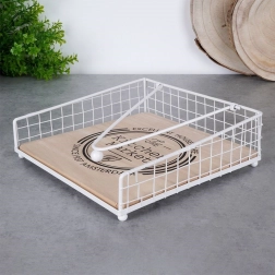 Ce porte-serviettes en métal blanc, rehaussé d’un détail en bois, est conçu pour un service aisé des serviettes et leur maintien optimal grâce à un bras presseur. Il convient à la cuisine, à la salle à manger et aux repas en plein air – au jardin, sur la terrasse ou le balcon.