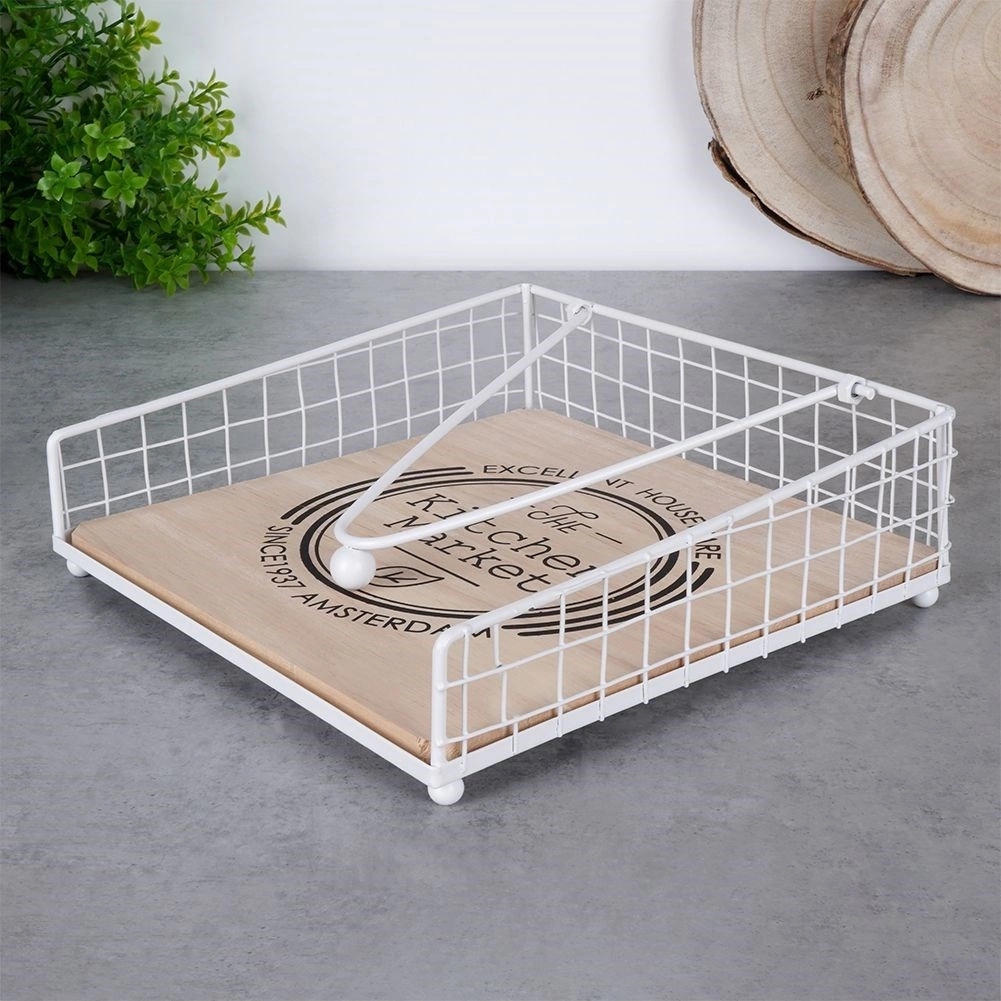 Élégant et pratique, ce porte-serviettes avec bras de pression maintient fermement les serviettes en place à la maison comme en extérieur. L’association de métal blanc et de bois de chêne avec l’inscription « The Kitchen Market » apporte du style à votre cuisine. Pression stable, matériaux résistants et usage polyvalent sur la table, au jardin ou sur la terrasse.