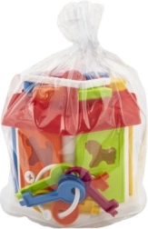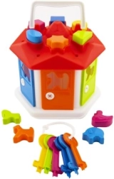 La maison d'insertion est adaptée aux tout-petits pour apprendre de manière ludique à reconnaître différentes formes géométriques et couleurs. Elle se compose d'une maison avec des ouvertures sur le toit pour insérer les formes plastiques. Les portes colorées s'ouvrent à l'aide de clés, offrant un niveau d'interaction supplémentaire qui stimule la patience et la résolution de problèmes.