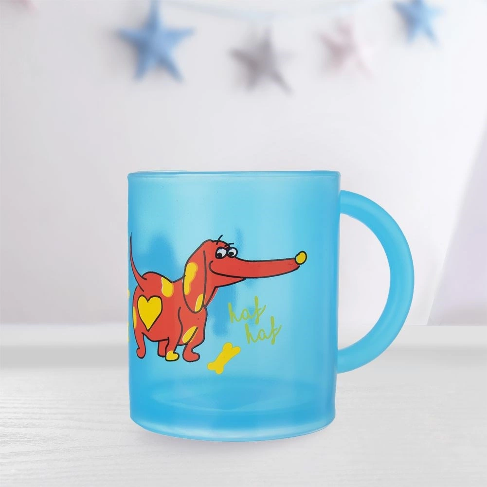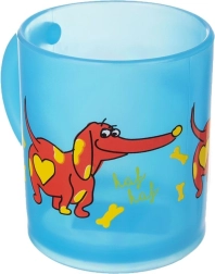 Tasse pour enfant légère et résistante avec anse, capacité 260 ml, en bleu semi‑transparent avec un motif joyeux de petit chien. Idéale pour le thé, l’eau, le jus et le cacao, avec une prise en main confortable, passe au lave‑vaisselle et au four à micro‑ondes. Sans BPA, recommandée à partir de 3 ans.