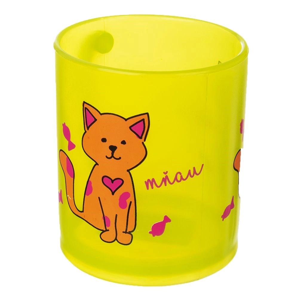 Tasse pour enfant légère et résistante avec anse, d’un volume de 260 ml, en jaune semi‑transparent avec décoration de chat. Idéale pour le thé, l’eau, le jus et le cacao. Compatible lave-vaisselle et micro-ondes, sans BPA, pour les enfants à partir de 3 ans. Matériau résistant, anse confortable et utilisation sûre au quotidien.