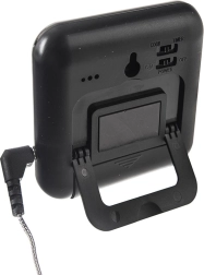 L’alarme de température vous avertit dès que le plat atteint la valeur réglée, et le minuteur intégré gère le décompte. Corps robuste, sonde en acier inoxydable avec étui de protection et long câble pour une utilisation sûre et confortable sur la cuisinière, au four et au gril.