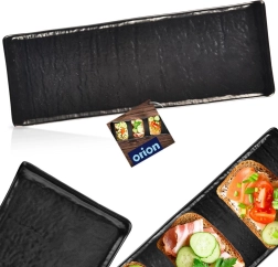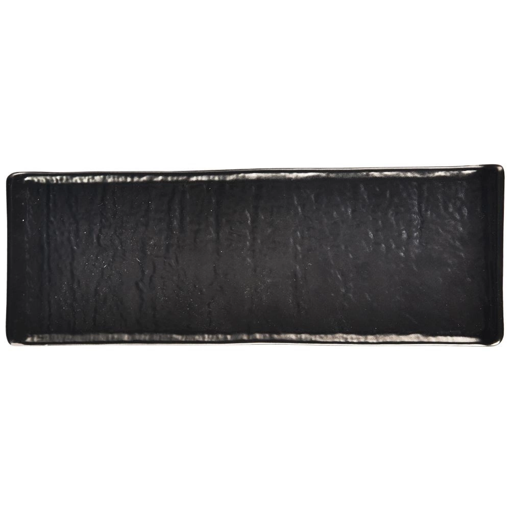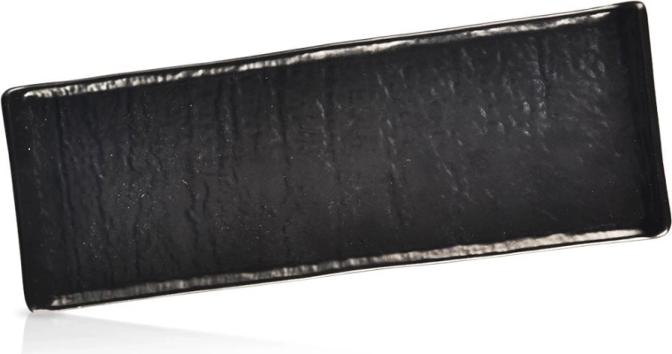 La forme rectangulaire allongée, l’émaillage noir et la texture subtile de la surface confèrent à chaque service une allure professionnelle.
