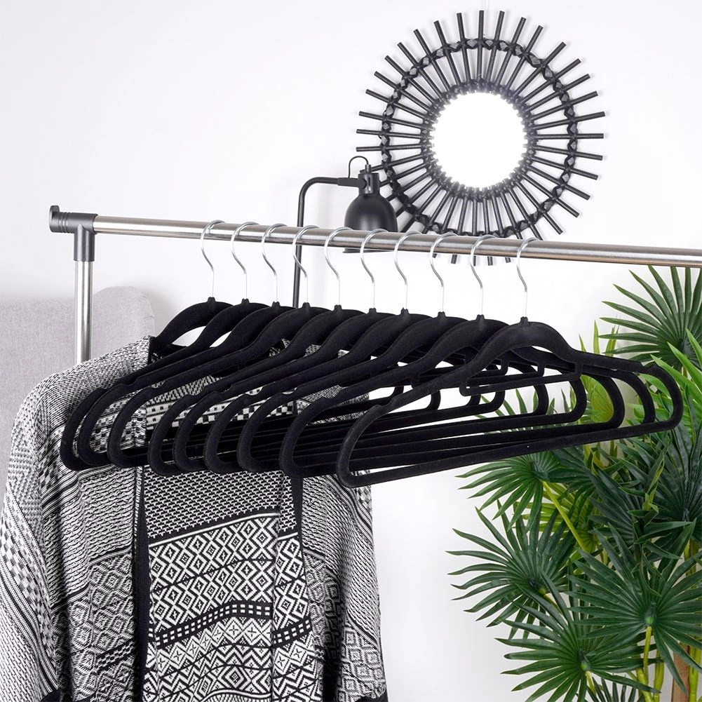Cintres en velours pivotants pour vêtements, noirs, lot de 10 pièces