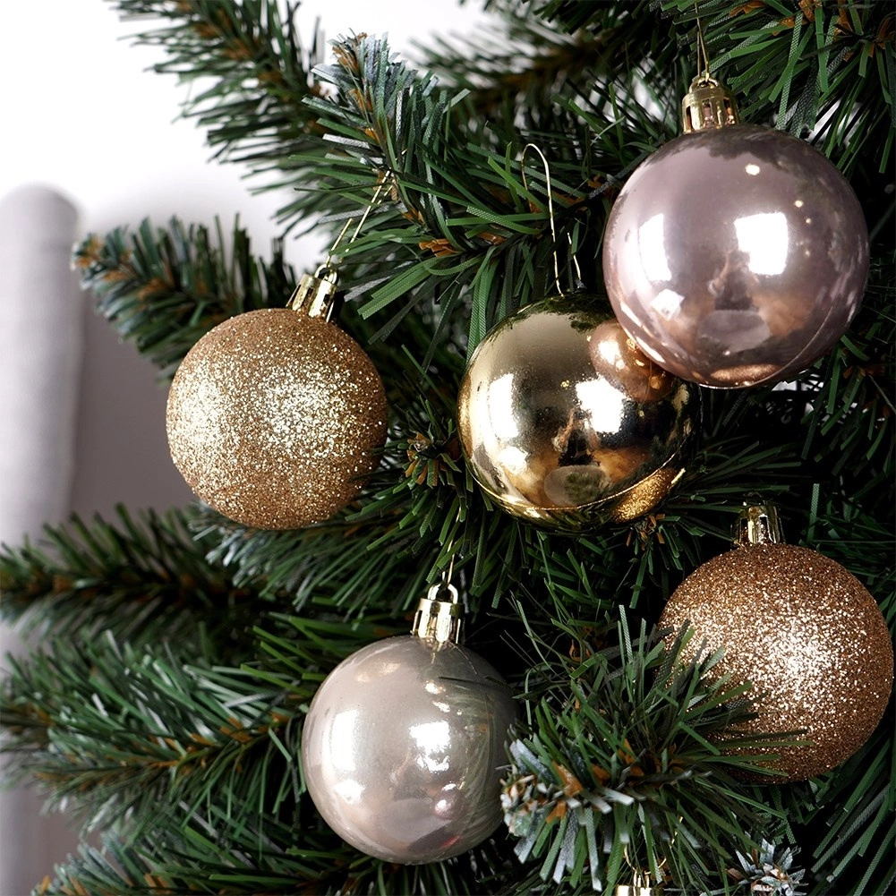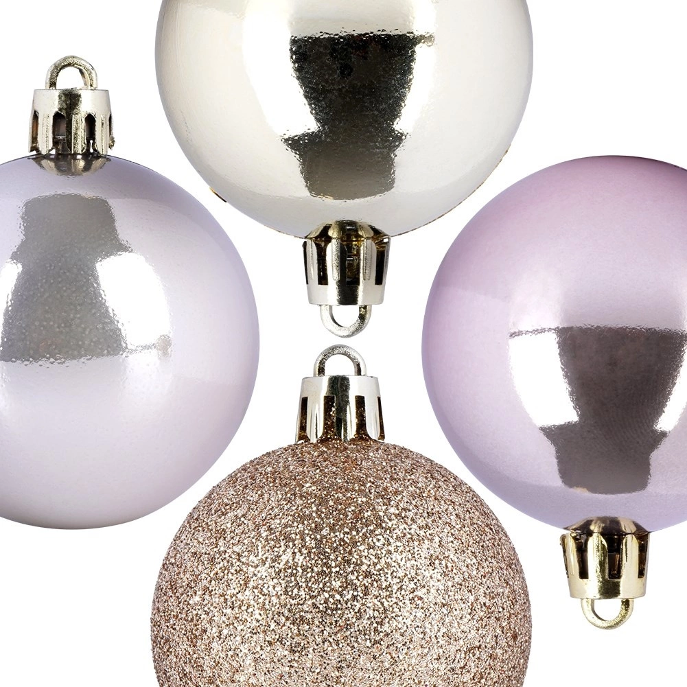 Avec cet ensemble stylé, créez aisément une ambiance de Noël féerique sur le sapin, dans les couronnes et les arrangements festifs. La palette rose-or et le mélange de finitions (brillant et pailleté) assurent un look moderne et élégant, adapté aux intérieurs classiques comme contemporains.