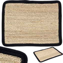 Un set de table en herbe de mer au style naturel, bordé de coton noir, au format 46 × 35 cm, protège la surface de la table et lui apporte une touche authentique. Il est résistant, facile à nettoyer avec un chiffon humide et s’intègre parfaitement aux intérieurs bohèmes, à la cuisine comme à la salle à manger. Il convient sous les assiettes, tasses et vases tout en offrant une surface décorative et antidérapante.