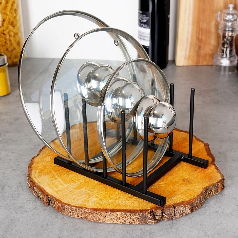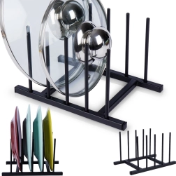 Apportez de l’ordre à votre cuisine et gardez couvercles et assiettes toujours à portée de main. Le support métallique à base rectangulaire solide maintient la vaisselle en position verticale, économise de l’espace et favorise une bonne circulation de l’air pour un séchage facile. Son design minimaliste noir convient aux intérieurs modernes comme classiques.