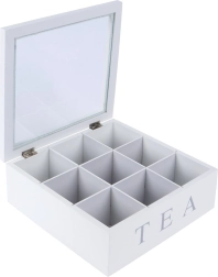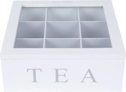 La boîte est fabriquée en MDF résistant et possède 9 compartiments séparés pour différents types et saveurs. Des charnières robustes garantissent une ouverture et une fermeture confortables. Une excellente solution pour la maison, le bureau et la restauration – et aussi une idée cadeau pratique pour les amateurs de thé.