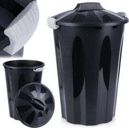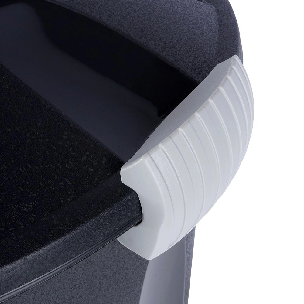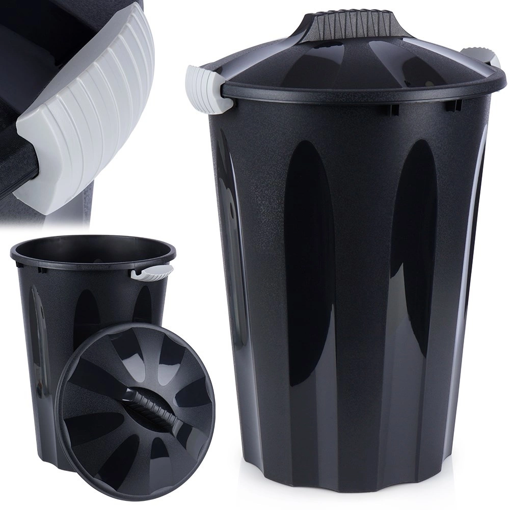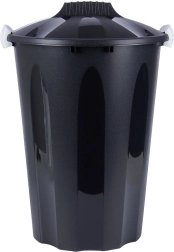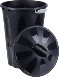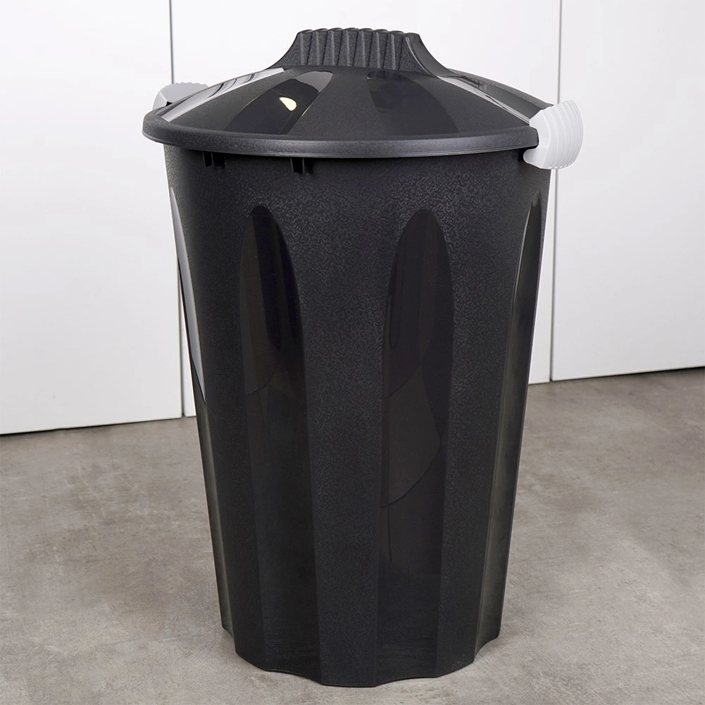 La poubelle est fabriquée en plastique de qualité de couleur noire, avec des clips gris clair pour une fermeture sûre. Le matériau est solide, léger et durable pour une utilisation quotidienne. Sa fabrication avec 90 % de matière recyclée et sa recyclabilité à 100 % en font un choix respectueux de l’environnement.