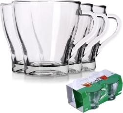 Ensemble pratique de quatre mugs en verre avec anse d’une capacité de 280 ml pour boire au quotidien du café, du thé et des boissons froides. Fabriqués en verre épais de qualité, transparent, résistant aux variations de température, compatibles lave-vaisselle et utilisables au micro-ondes. Forme universelle et anse confortable pour une prise en main sûre avec des boissons chaudes.