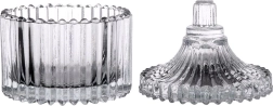 Sucrier en verre stylé avec couvercle, dimensions compactes 6,5 × 9 cm et capacité 80 ml, un excellent choix pour un usage quotidien comme pour les occasions festives. La décoration nervurée apporte une touche d’élégance vintage et le verre transparent permet de contrôler le contenu.