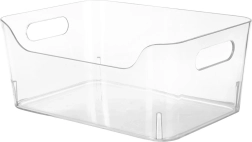 Pratique organiseur transparent pour réfrigérateur de dimensions 23 × 16 × 9,5 cm, qui aide à maintenir l’ordre et la visibilité. En plastique de qualité, avec deux poignées confortables pour un retrait et un transport faciles. Idéal pour les fruits, les légumes et d’autres aliments – tout sera bien organisé et facilement accessible.