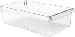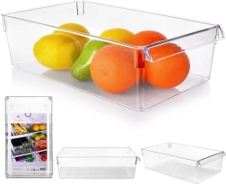 Organisateur transparent pratique et résistant pour réfrigérateur, dimensions 36 × 20,5 × 10 cm, qui aide à garder les aliments bien ordonnés. Grâce à la poignée intégrée, l’extraction est simple et rapide. La boîte est fabriquée en plastique de qualité, sans danger pour les aliments, robuste et facile à nettoyer. Idéale pour les fruits, les légumes et autres aliments, sans couvercle pour une vue immédiate.