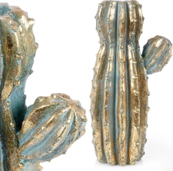Ce vase décoratif au design attrayant de cactus doré associe look moderne et fonctionnalité. La structure marquée des côtes et des petites protubérances imite fidèlement un cactus naturel, tandis que la surface métallique aux reflets bleu‑verts crée un accent spectaculaire dans tout intérieur.