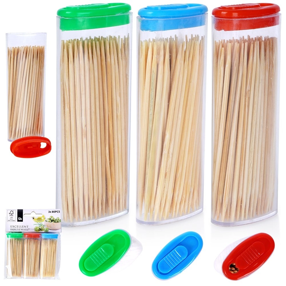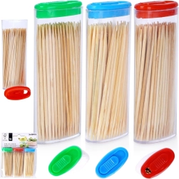 Des cure-dents en bambou élégants et fonctionnels dans des distributeurs transparents compacts facilitent le service des olives, fromages, canapés et desserts. Grâce au bambou naturel, ils sont solides, lisses et respectueux des aliments, tandis que les pointes des deux côtés assurent un piquage précis et une utilisation confortable après les repas.