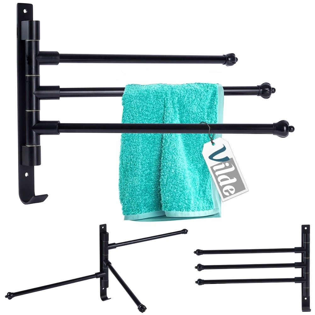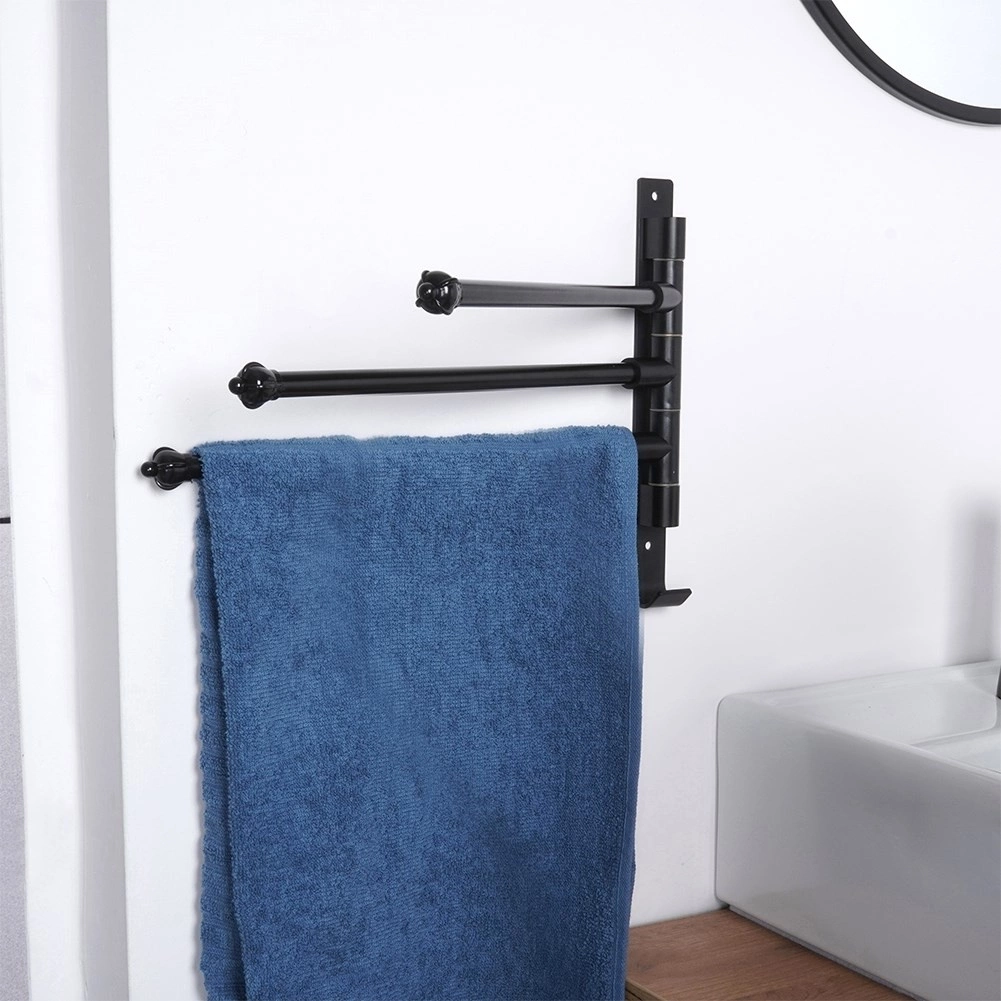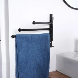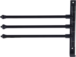 Élégant et fonctionnel, ce porte-serviettes à trois bras pivotants indépendants permet d’espacer les textiles pour une meilleure circulation de l’air et un séchage plus rapide. La finition noire mate apporte une touche moderne et industrielle à la salle de bain et se marie facilement avec d’autres accessoires.