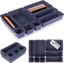 L’organiseur modulaire de tiroirs Vilde offre une organisation intelligente et un ordre immédiat. Huit compartiments séparés de tailles différentes peuvent être combinés librement et adaptés à la largeur et à la profondeur du tiroir. Idéal pour les fournitures de bureau, les câbles, les cosmétiques, les bijoux et les petits accessoires.