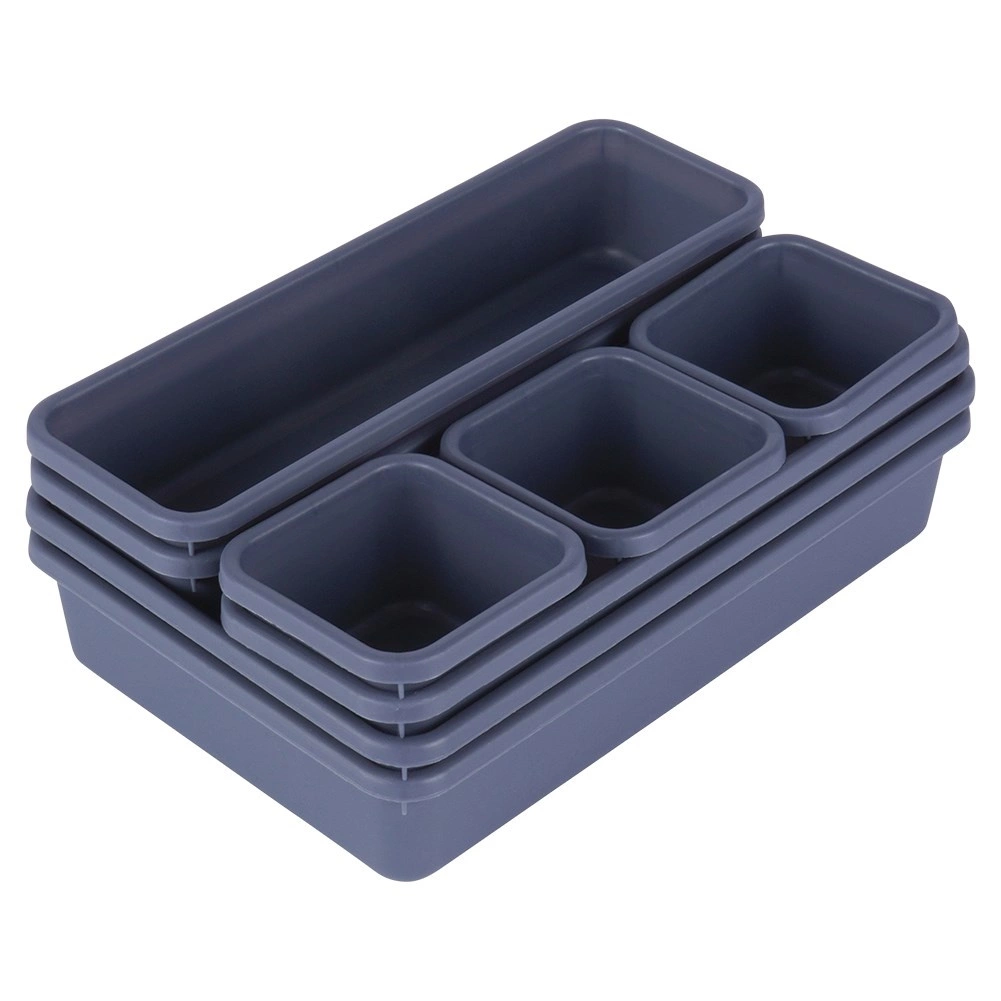 Gardez chaque tiroir bien rangé grâce à un set de 8 organiseurs modulaires couleur graphite. Combinez des bacs de tailles variées, créez la disposition de votre choix et ayez tout à portée de main. Plastique léger et résistant, 3 dimensions pratiques, entretien facile et emboîtement gain de place font de ce set une solution idéale pour le bureau, la salle de bains et le dressing.