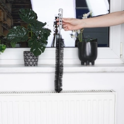 Brosse pour radiateurs pratique et élastique de 70 cm pour nettoyer facilement les espaces étroits et difficiles d’accès. Des poils résistants éliminent efficacement la poussière et les saletés entre les ailettes, derrière les meubles et dans les fentes étroites. Poignée confortable assurant une prise en main sûre et trou de suspension pour un rangement pratique.