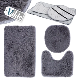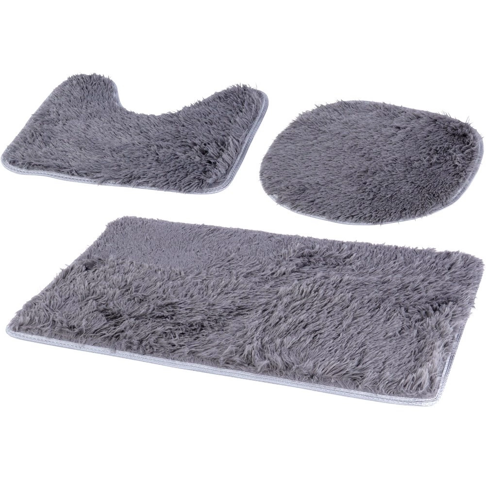 Ensemble élégant de trois tapis de salle de bain en gris raffiné pour la sécurité et le confort au quotidien. Comprend un tapis rectangulaire, un tapis en U pour WC et une housse d’abattant WC. La fibre douce et dense est agréable au toucher, le dessous antidérapant assure la stabilité et le design universel convient aux intérieurs modernes comme classiques.