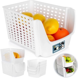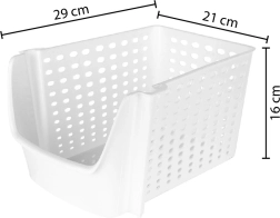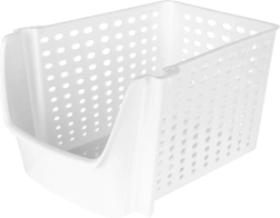 Ce panier blanc polyvalent est idéal pour ranger de façon ordonnée fruits, légumes et autres aliments. La perforation sur les côtés et à l’arrière assure une ventilation et une meilleure visibilité du contenu, ce qui aide à garder les ingrédients frais plus longtemps. La découpe frontale permet un accès rapide et confortable aux produits stockés.