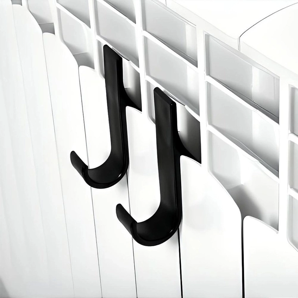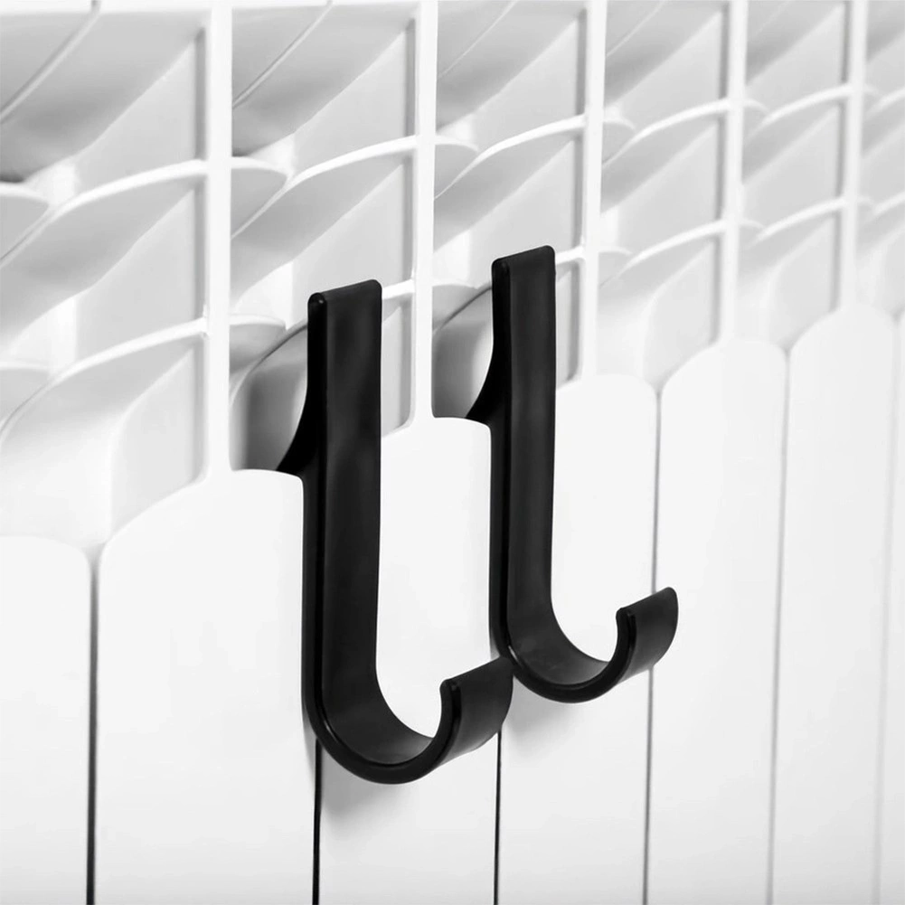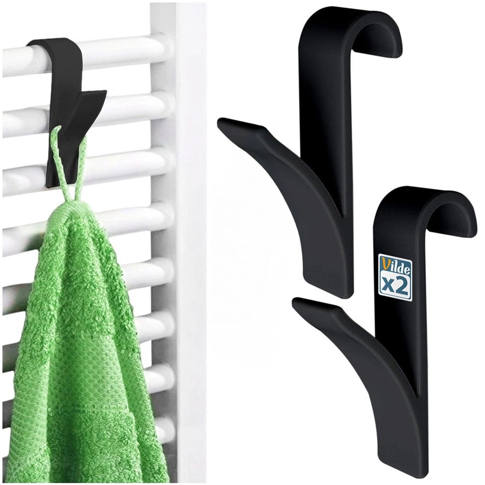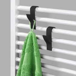 Pratique set de deux crochets pour radiateur pour un séchage rapide et un gain de place. Ils se fixent facilement sans perçage, sont en plastique résistant de couleur noire et conviennent à la plupart des radiateurs à colonnes et panneaux, ainsi qu’aux portes ou aux étagères. Idéal pour les serviettes, peignoirs, pyjamas et torchons de cuisine – un design minimaliste élégant qui s’intègre dans toute salle de bain, cuisine ou entrée.