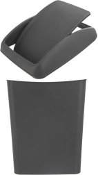 Poubelle pratique pour petits déchets avec clapet basculant, idéale pour les espaces réduits. Elle est légère, stable et résistante, ce qui permet de la poser au sol, sur un plan de travail ou de la ranger dans un placard. Son design épuré et intemporel en gris foncé s’intègre à différents styles d’intérieur.
