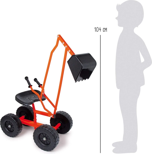 La pelleteuse à pédales pour enfants Small Foot est un excellent choix pour les petits constructeurs. Sa construction métallique durable, sa large base à quatre roues et ses commandes à leviers intuitives en font un jouet idéal pour le bac à sable comme pour la cour. Grâce à la pelle rotative à 360°, les enfants peuvent facilement ramasser et transvaser du sable ou de la terre.