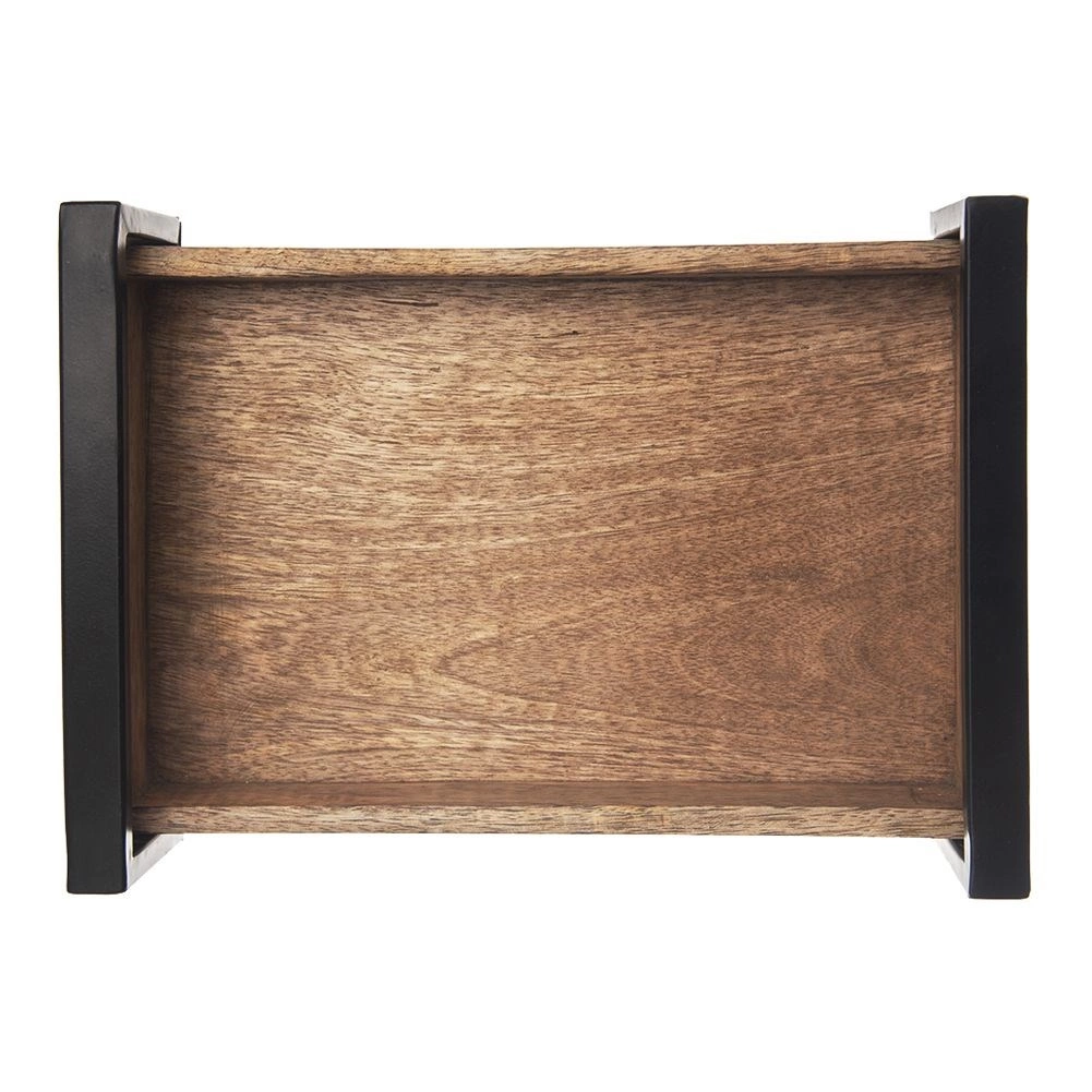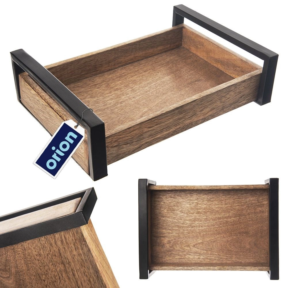Ce plateau rectangulaire en bois de manguier se distingue par la beauté naturelle de son matériau et sa longue durée de vie. Grâce à ses bords surélevés et à ses poignées métalliques robustes, vous transportez en toute sécurité café, thé, desserts et petits plats. La surface est facile à entretenir, le bois est résistant à l’humidité et aux déformations et n’absorbe pas les odeurs.
