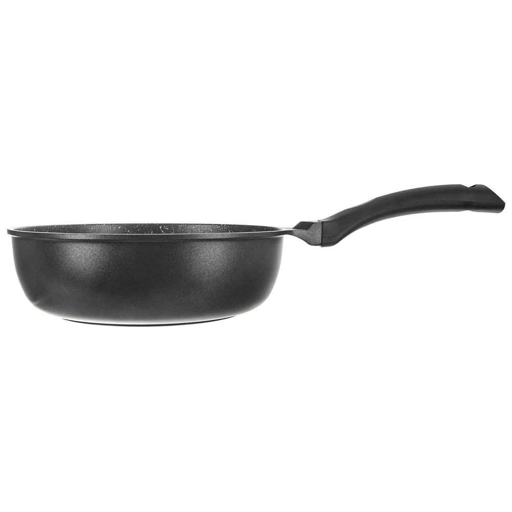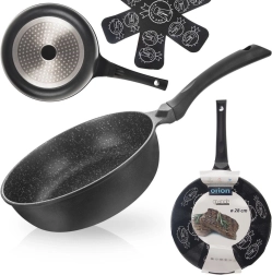 Poêle profonde GRANDE de 28 cm de diamètre en aluminium coulé avec un revêtement granit antiadhésif Pfluon Granit sans PFOA, garantissant un chauffage rapide et uniforme, une cuisson saine avec un minimum de matières grasses et une utilisation universelle sur tous types de plaques, y compris l’induction. Poignée ergonomique, possibilité de lavage au lave‑vaisselle et sous‑verre de protection contre les rayures inclus dans l’emballage.