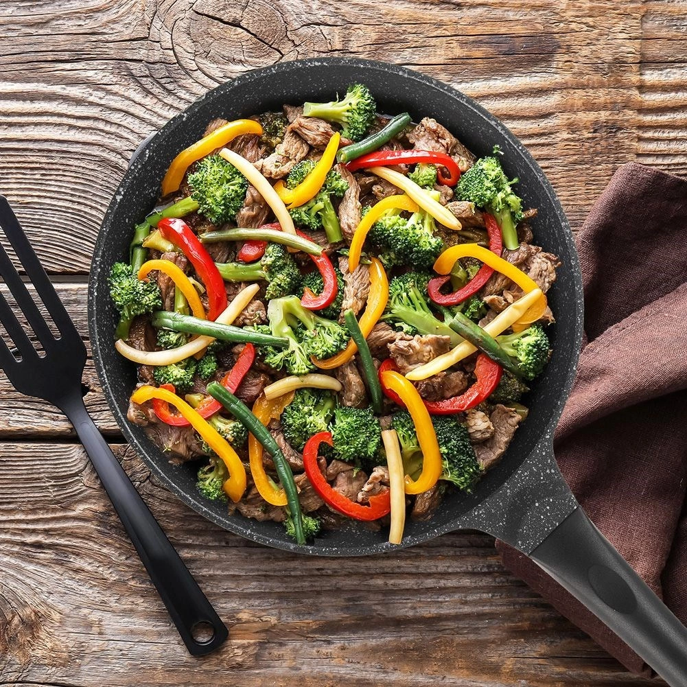 - Revêtement granit antiadhésif pour une cuisine saine et un nettoyage facile.