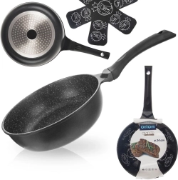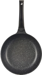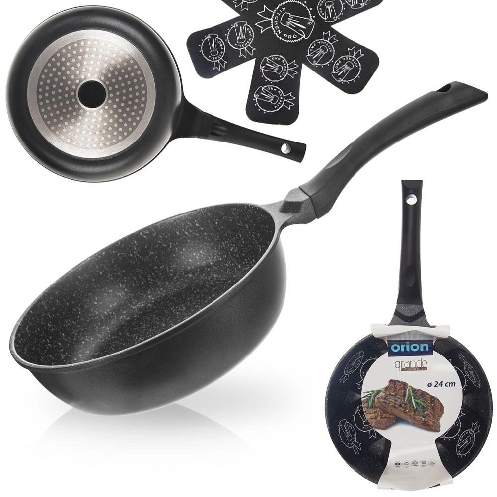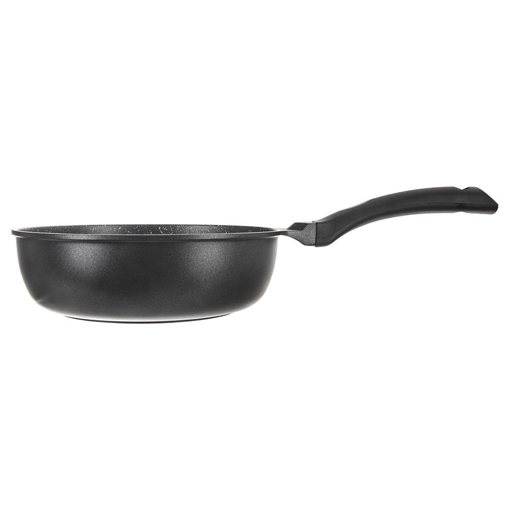 Poêle antiadhésive profonde de 24 cm de diamètre en fonte d’aluminium résistante offrant une répartition rapide et uniforme de la chaleur, un revêtement granit antiadhésif sans PFOA et une utilisation universelle sur tous types de tables de cuisson, y compris l’induction. Grâce à son rebord haut, elle est idéale pour frire comme pour mijoter, économise l’énergie et permet de cuisiner avec un minimum de matière grasse. Inclut un patin en feutre de protection pour un empilage en toute sécurité.