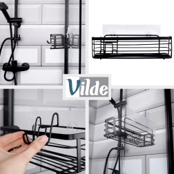 Étagère de salle de bain au style loft industriel, idéale sous la douche, près de la baignoire ou du lavabo. Grâce au montage autocollant, vous l’installez rapidement et sans percer. La finition noire mate et le métal de qualité garantissent une longue durée de vie et un entretien aisé.