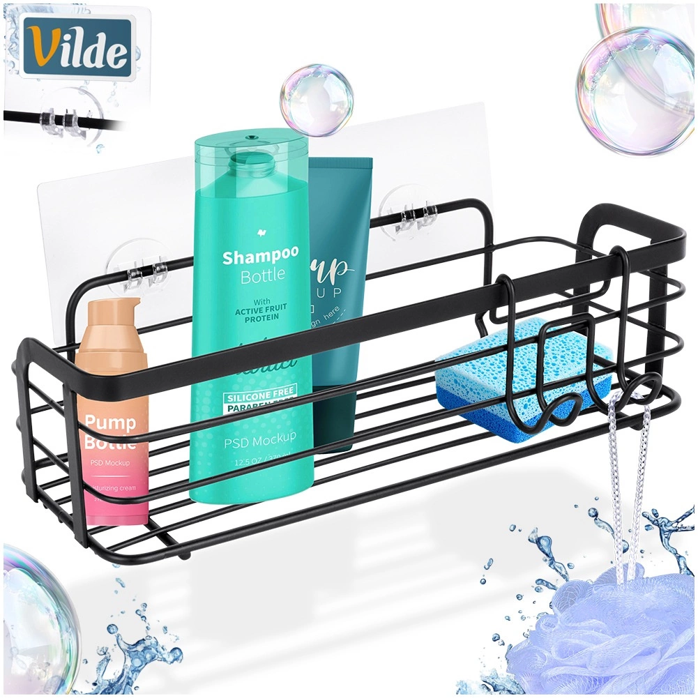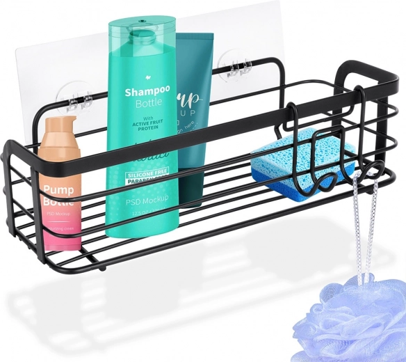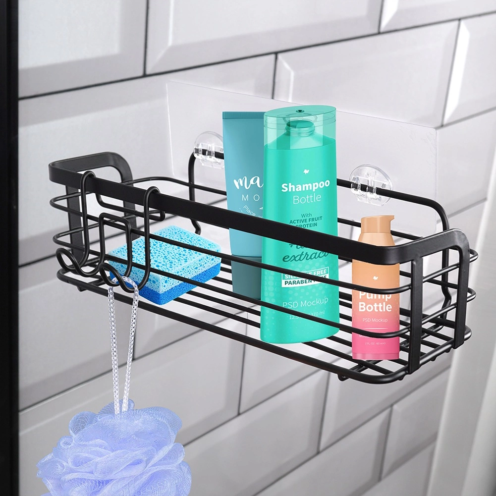 Pratique étagère de douche autocollante en métal résistant, finition noire mate. Offre suffisamment d’espace pour les shampoings, gels et cosmétiques, installation facile sans perçage et inclut un porte-accessoires amovible avec deux crochets. Finition inoxydable, entretien facile et utilisation polyvalente dans la salle de bain comme dans la cuisine.