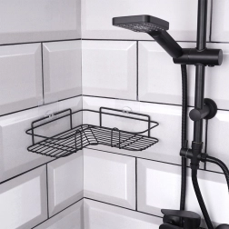 L’étagère d’angle autocollante pour la douche est une excellente solution pour toute salle de bain au style loft moderne. Grâce à sa structure métallique robuste avec revêtement en poudre noir mat, elle est solide, durable et facile à nettoyer. Parfaite pour ranger shampoings, gels, brosses et éponges, elle peut également être utilisée en cuisine comme étagère à épices. Des supports autocollants transparents sont inclus pour une installation rapide sans endommager le carrelage.