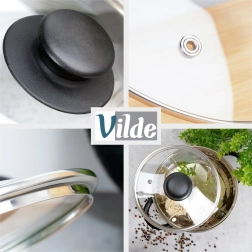 Grâce à l’orifice de ventilation, le couvercle évacue l’excès de vapeur et réduit le risque de débordement. Sa forme légèrement bombée favorise la circulation de l’air chaud et une cuisson uniforme. Le rebord haut assure un appui solide, quasi hermétique, sur le récipient et une meilleure rétention de la chaleur. Le couvercle est compatible lave-vaisselle et résiste à des températures allant jusqu’à 200 °C.