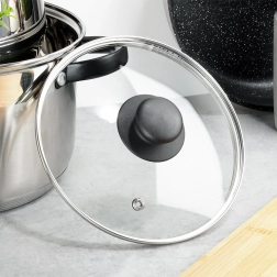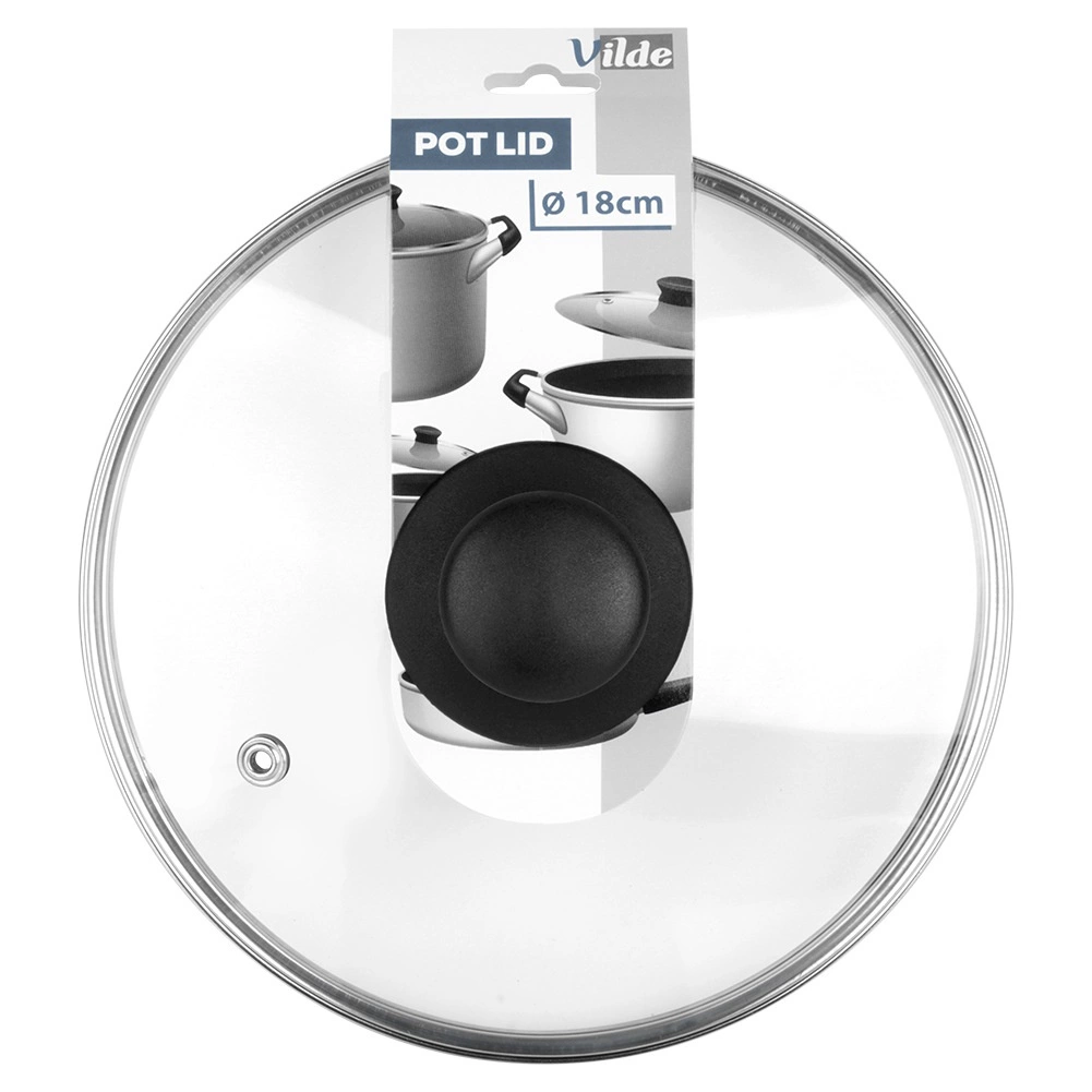 Le couvercle en verre 18 cm est un accessoire pratique pour casseroles, poêles et saucières de même diamètre. Il est fabriqué en verre transparent résistant à la chaleur avec bord en inox et bouton en plastique résistant de couleur noire. Sa transparence permet de surveiller la cuisson sans soulever le couvercle, économisant ainsi énergie et temps.