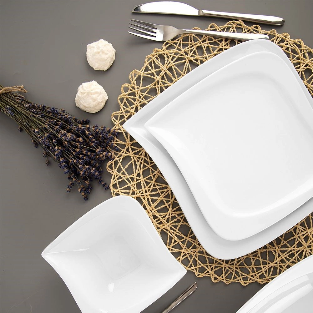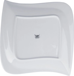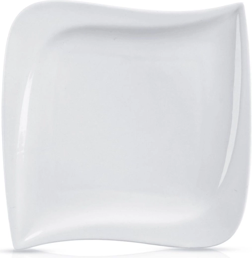 Assiette en porcelaine polyvalente de la collection MONA, remarquable par son style minimaliste et son design moderne en carré irrégulier. La glaçure blanche brillante se démarque sur toute table et s’accorde parfaitement avec les autres pièces de vaisselle. Grâce à sa surface plane, les aliments se disposent et se servent facilement.