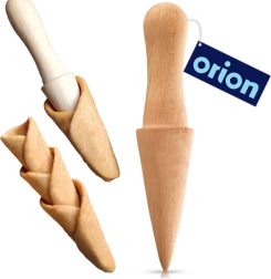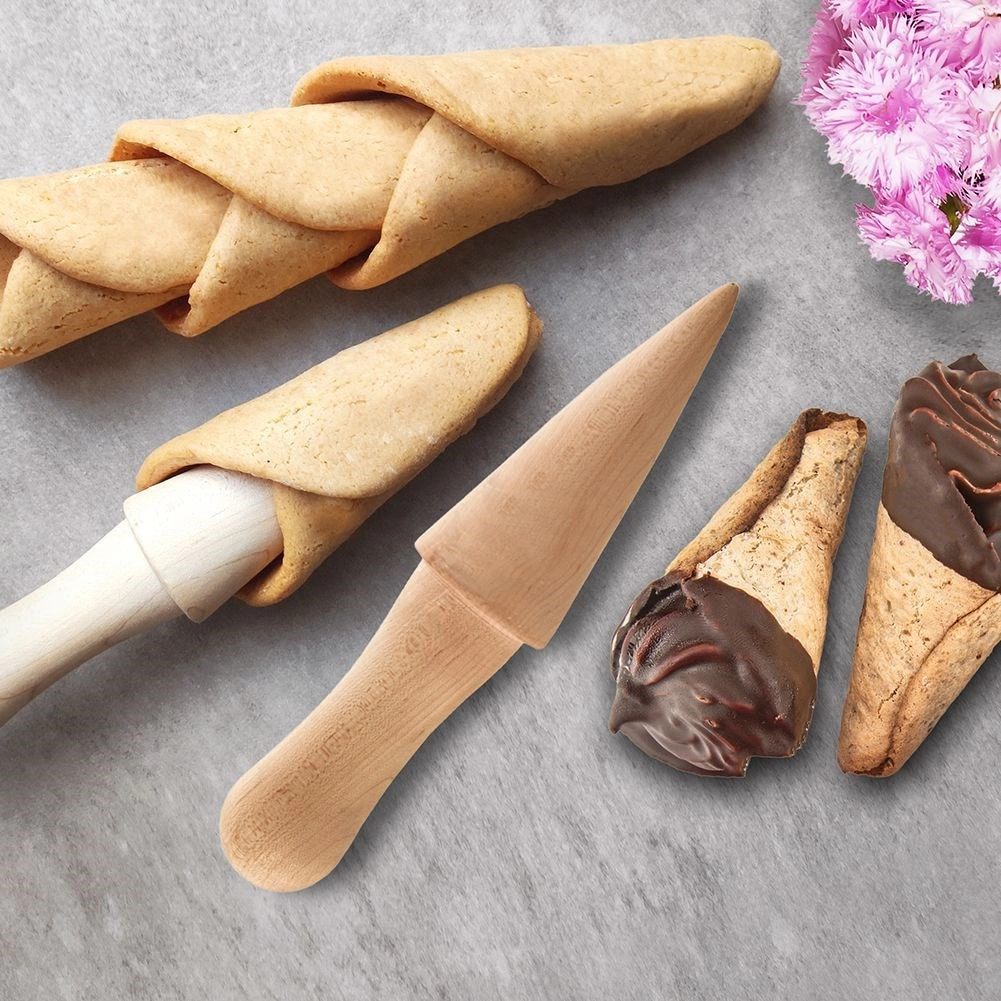 Ce moule à cornets en hêtre possède une forme conique ergonomique qui facilite l’enroulement régulier de la pâte et la cuisson au four. Il est réutilisable, résistant aux dommages et, avec un entretien approprié, vous durera de nombreuses années.